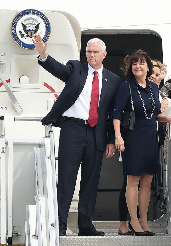 | ▲ 마이크 펜스 미 부통령과 부인 케런 펜스, 두 자녀가 18일 오전 경기 평택 오산미공군기지에서 방한 일정을 마친 뒤 비행기에 탑승하고 있다. 펜스 부통령은 지난 17일 판문점에서 “실패한 전략적 인내 정책을 폐기하며 우리는 북한에 대한 외교적·경제적 압박을 강화할 것”이라면서도 “북한 문제를 평화적으로 해결할 수 있기를 희망한다”고 강조했다. | ||