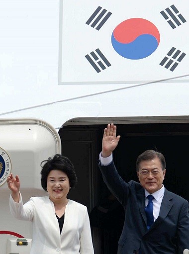 문 대통령은 이날 오후 2시께 경기도 성남에 위치한 서울공항에서 대통령 전용기편에 올라타 출국했다.