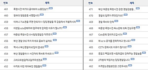 [일요주간=정현수 기자] 경찰이 부산 여중생 폭행 사건을 은폐·축소하려 했다는 의혹이 제기되면서 사건을 수사 중인 부산 사상경찰서 홈페이지가 항의 게시물로 도배되고 있다.