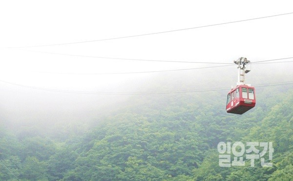 박물관을 둘러본 후 발길은 자연스레 독도전망대로 오르는 케이블카로 향했다. 전망대가 있는 망향봉 정상은 짙은 안개에 가려져 보이지 않았다. 케이블카를 타고 안개 속으로 들어갔다.