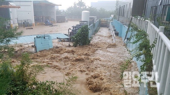 이는 시간당 40mm로 넘는 것으로 이 때문에 거제 지역은 크고 작은 비 피해가 속출하고 있다.