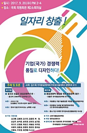 [일요주간=최종문 기자] 한국품질경영학회와 국회의원 23명이 함께 20일 오후 2시께 ‘일자리 창출! 기업(국가) 경쟁력, 품질로 디자인하다!’를 주제로 세미나를 개최한다.