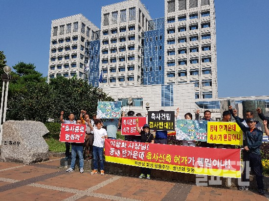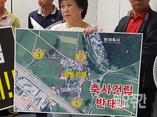 [일요주간=정병기 기자]진주시 이반성면 길성리와 가산리에 들어서는 3곳의 축사를 두고 축사건립을 반대하는 주민들과 3개축사 건축주간에 논란이 예상되고 있는 가운데 축사건립반대 마을주민20여명은 25일 오전10시께 진주시청 브리핑 룸에서 기자회견을 가졌다.