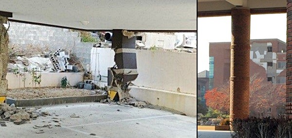 [일요주간=이수근 기자] 지난 15일 포항에서 발생한 지진과 여진으로 인해 시민들의 불안감이 증폭되는 가운데 지역 내 필로티 구조 건물의 기둥이 붕괴된 사진이 공개돼 건물 붕괴에 대한 우려가 높아지고 있다.
