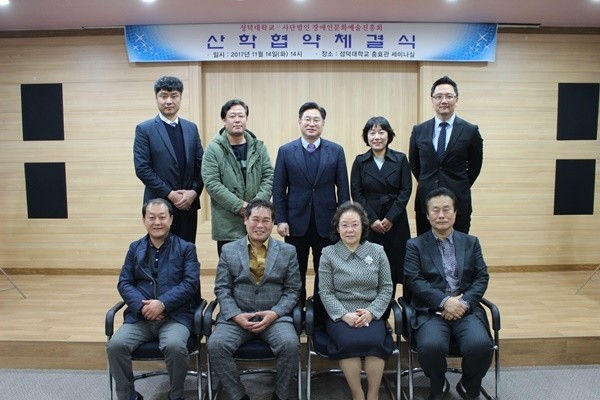 이날 MOU 체결에는 성덕대학교 윤지현 총장, 배명수 기획실장, 박만성 행정지원처장, 손명희 재활승마복지과 교수, 그리고 (사)장애인문화예술진흥회 장길산 회장, 노세중 부회장 등이 참석했다.
