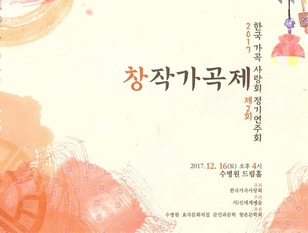 금번 창작가요제의 산파역에는 혼연일체 시인 정성수, 작곡가 한광희, 시인 하송, 피아니스트 최정은이 일구어낸 2017년의 12월 송년의 결실체이다. 기존 전통음악에 철저하게 충실하면서도 현시대에 소통할 수 있는 가요 창작물을 격조와 겸손의 양수겸장 하에 독자들에게 선보인 것이다.