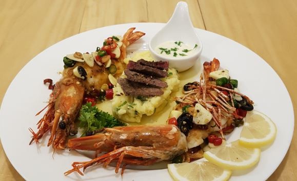 메인 코스로는 ‘플래터, OMG스테이크, 프라운감바스, 푸팟퐁커리, 프라이 및 스틸프라이 요리’ 등의 다양한 메뉴를 즐길 수 있다. 일반적으로 서빙되는 음식으로는 ‘타이 쌀국수, 파타이’ 등의 아시안 요리가 골고루 가능하다.
