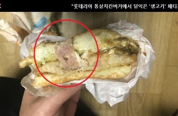 하지만 롯데리아가 새롭게 내놓은 통살치킨버거 일부 제품에서 덜 익은 상태의 닭고기 패티가 종종 발견되며 맥도날드 사태로 빚어 졌던 일명 ‘햄버거 병’ 불안을 야기하고 있다.