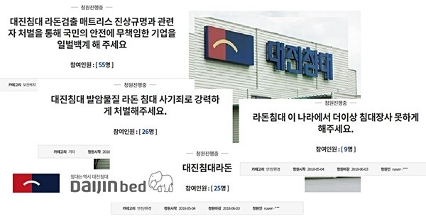 [일요주간=김지민 기자] 국내 유명 침대업체 ‘대진침대’의 제품 여러 모델에서 1급 발암물질인 ‘라돈’이 기준치보다 초과 검출됐다는 언론 보도 이후 파장이 일파만파 커지고 있다. 이미 수년째 방사능이 나오는 침대를 사용해온 소비자들이 피해보상을 요구하며 법적대응에 나설 경우 천문학적인 배상금을 물어야 할 수도 있는 만큼 대진침대가 창사 이래 최대 위기를 맞을 수 있다는 관측이 나오고 있다.