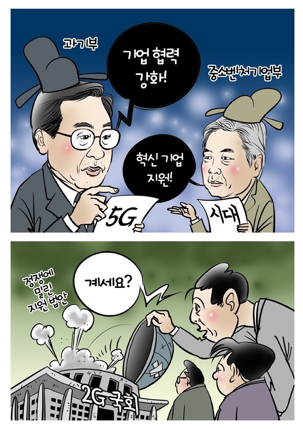 [일요주간 만평] 정부 5G 기업 적극 지원...지원 법안도 뒤따라야