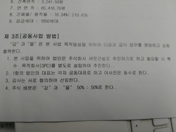 한미에셋과 추진위가 체결한 공동사업계약서에 따르면 공동사업자 관계인 양측은 업무를 분담하고 수익 배분을 50대 50%로 하며, 추진위 관련 자료 및 정보를 정확하게 작성해 지체없이 제공하게 되어 있다.